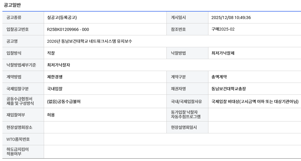 구매2025-02_2026년 동남보건대학교 네트워크시스템 유지보수